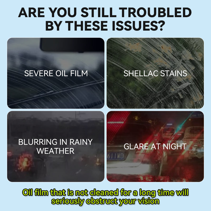 POWERFUL OIL REMOVAL: Effectively eliminates stubborn oil film, grease, and road grime from windshields and mirrors. Restores transparency and clarity to car glass, ensuring better driving visibility and safety in rainy, foggy, or nighttime conditions.