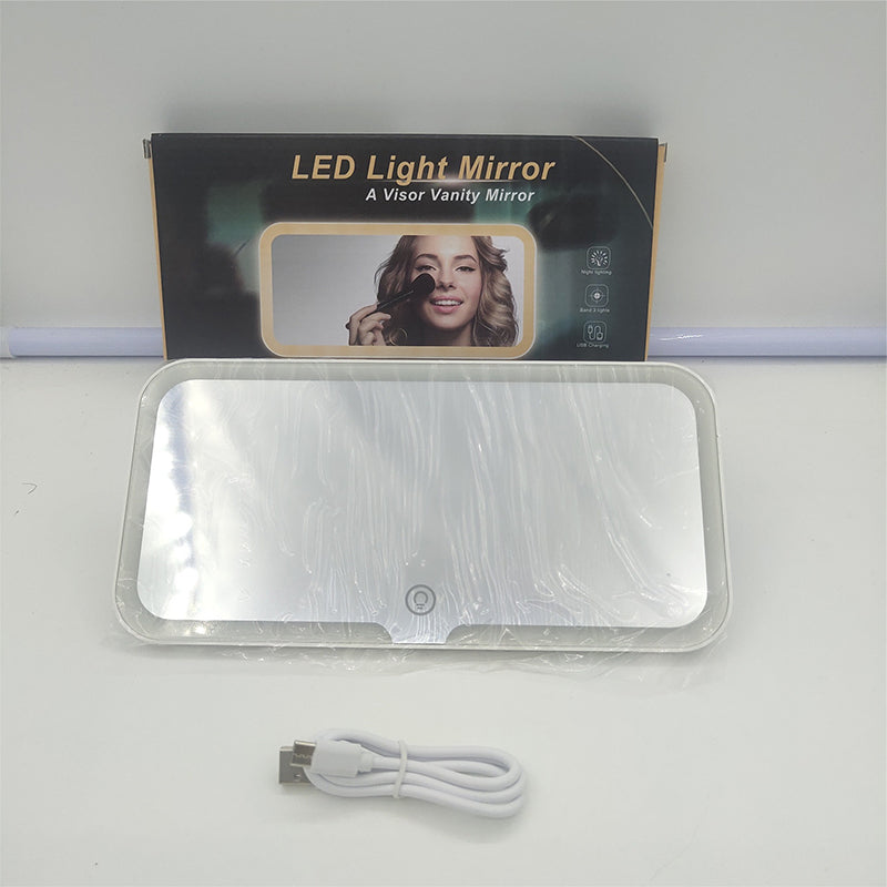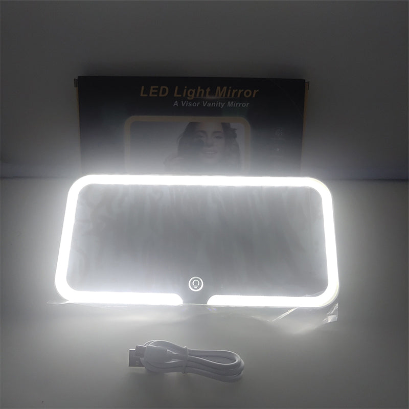 The Car Sun Visor LED Vanity Mirror is a compact and portable accessory for your car, featuring adjustable LED lights and a rechargeable battery for convenient on-the-go grooming and makeup application.