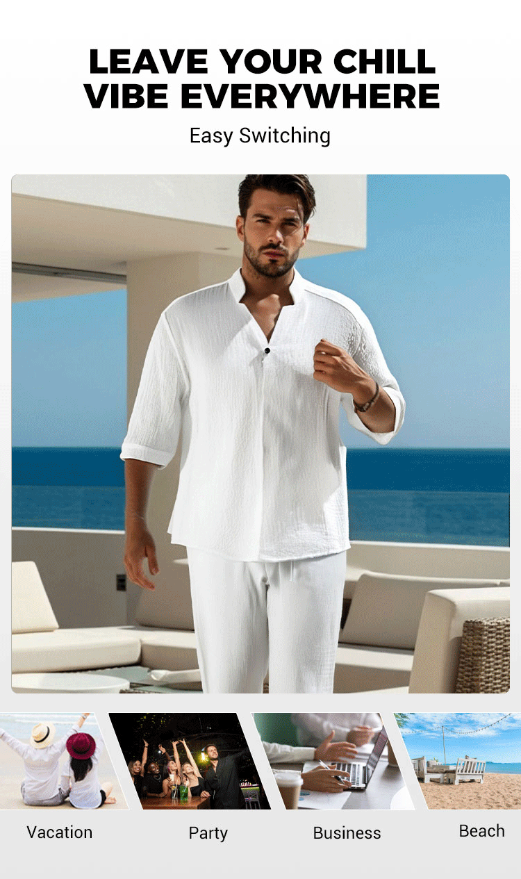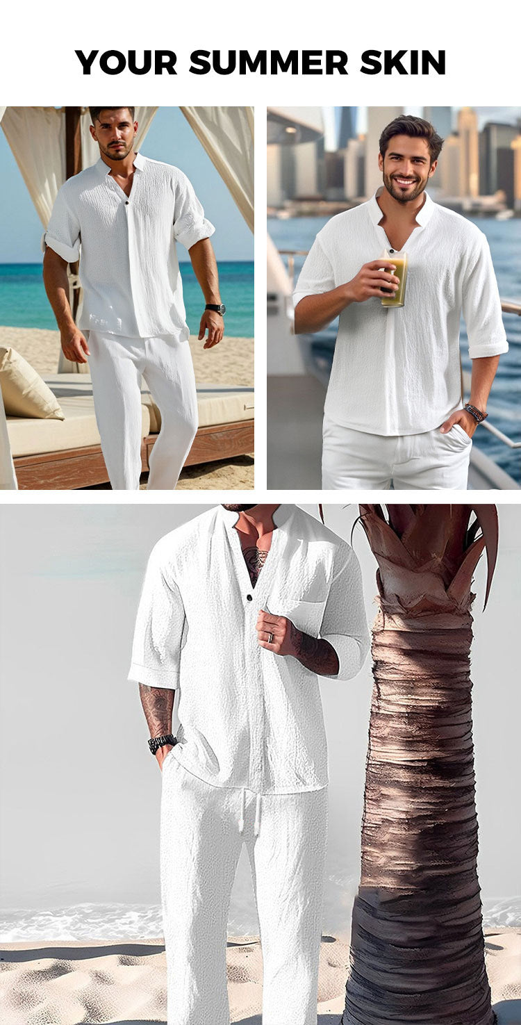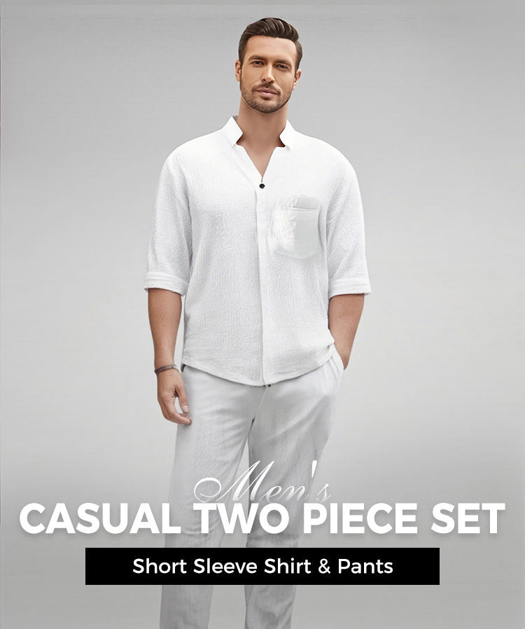🎉BIG SALE🎉Men's Trendy Cotton Linen Top & Pants Two-Piece Set