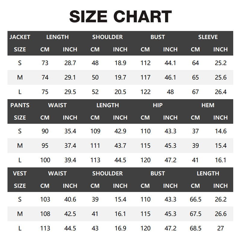 THREE-PIECE ENSEMBLE - Includes a matching jacket, vest, and trousers for a complete, coordinated look. This saves you time and effort in styling, ensuring you always appear polished and put-together for any formal event.